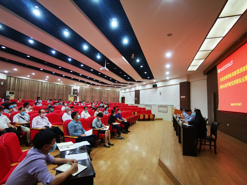 根据学校党委关于巡察工作统一部署,5月18日校党委第四轮巡察第四巡察组在学院203报告厅召开巡察工作反馈会。校党委常委、副校长钱永华,第四巡察组组长刘新胜出席会议并讲话,学院班子成员、党委委员、教授委员会委员、教工党支部书记、系室主任、课程组负责人、科级干部、副高及以上专业技术人员和教师代表100余人参会,反馈会由院党委副书记、院长胡笑涛主持。