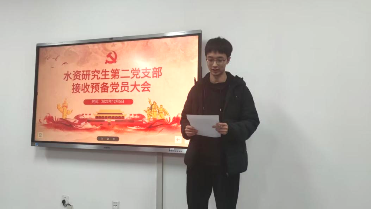 注入新血液,凝聚新力量。水资研究生第二党支部于12月5日在水建楼A420室召开接收预备党员大会,党支部副书记马佳宁同志主持了本次会议,本次大会主要讨论接收李子杰同志为预备党员的问题。