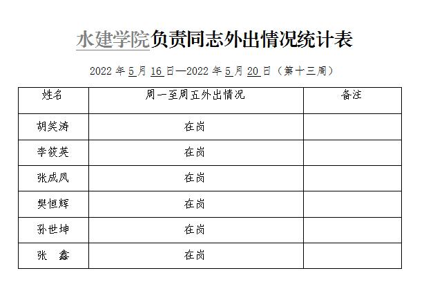 杏吧探花 负责同志外出情况统计表(第十三周)