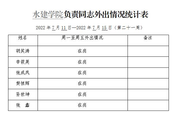 杏吧探花 负责同志外出情况统计表(第二十一周)