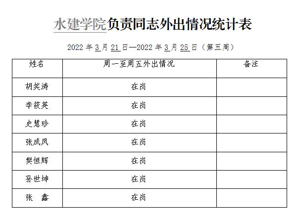 杏吧探花 负责同志外出情况统计表(第五周)