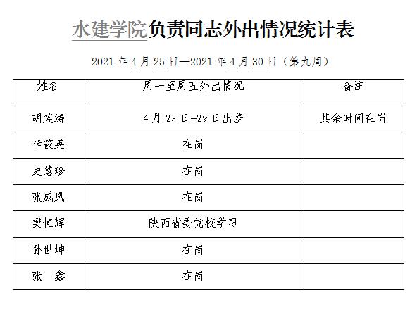 » 杏吧探花 负责同志外出情况统计表(第九周)