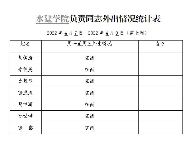 » 杏吧探花 负责同志外出情况统计表(第七周)