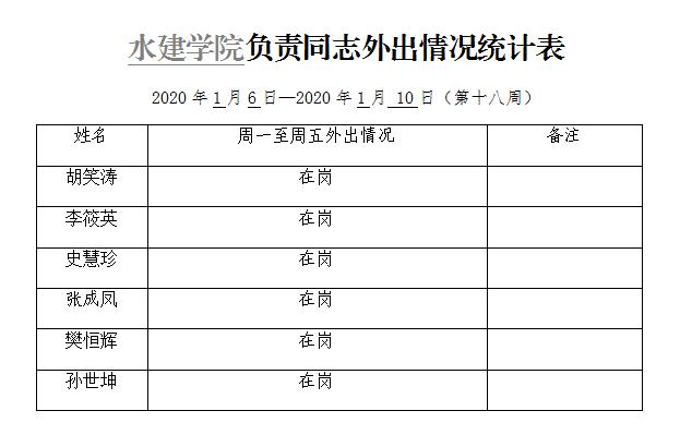 杏吧探花 负责同志外出情况统计表(第十八周)
