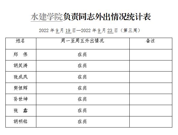» 杏吧探花 负责同志外出情况统计表(第三周)