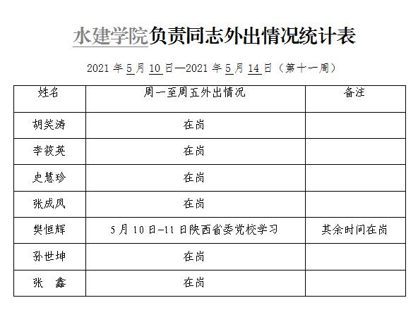 杏吧探花 负责同志外出情况统计表(第十一周)