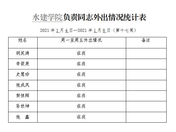 杏吧探花 负责同志外出情况统计表(第十七周)