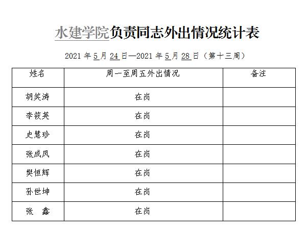 杏吧探花 负责同志外出情况统计表(第十三周)