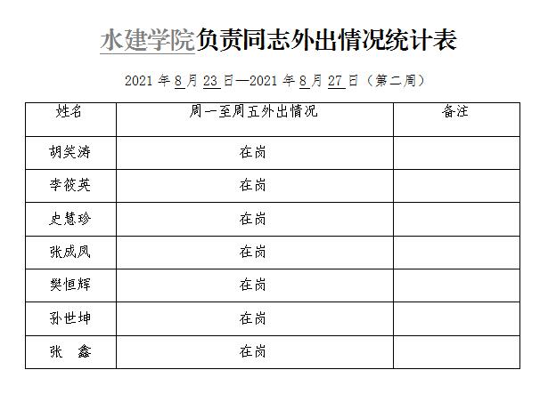 » 杏吧探花 负责同志外出情况统计表(第二周)