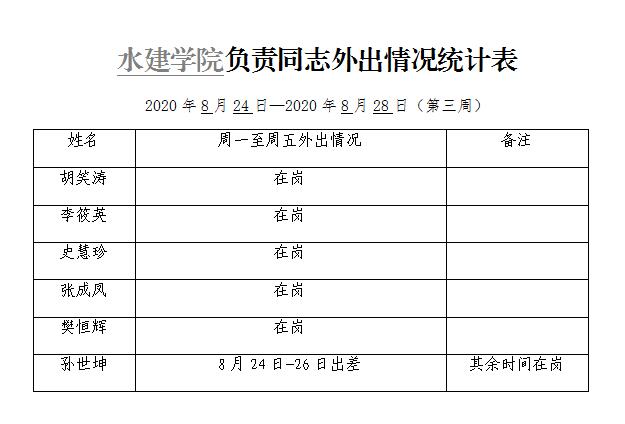 » 杏吧探花 负责同志外出情况统计表(第三周)