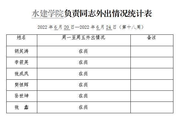 杏吧探花 负责同志外出情况统计表(第十八周)