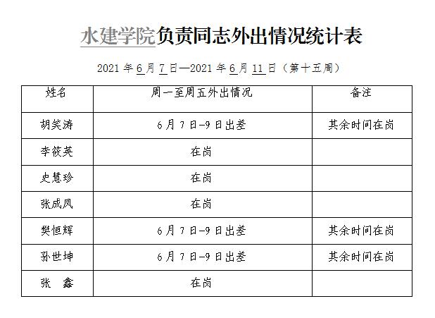 杏吧探花 负责同志外出情况统计表(第十五周)
