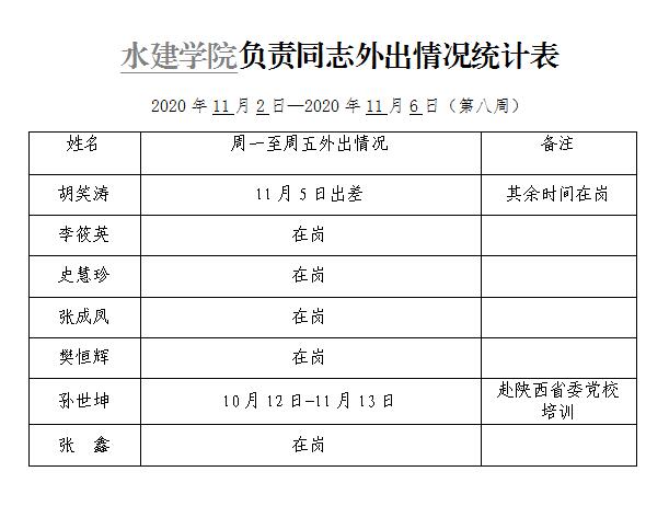 杏吧探花 负责同志外出情况统计表(第八周)