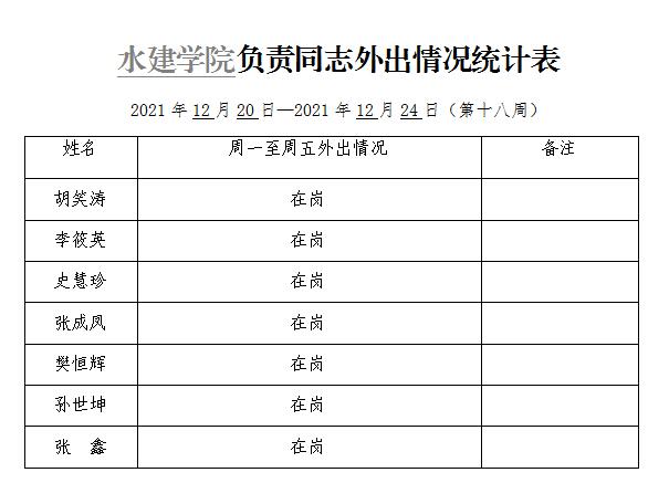 杏吧探花 负责同志外出情况统计表(第十八周)