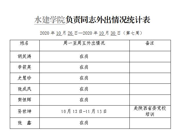 杏吧探花 负责同志外出情况统计表(第七周)