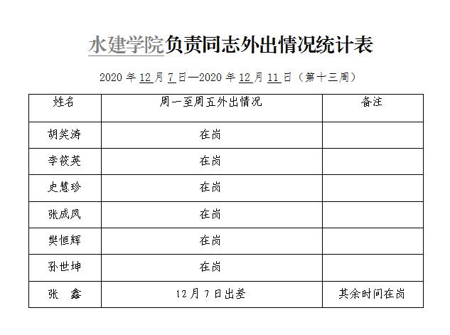 杏吧探花 负责同志外出情况统计表(第十三周)