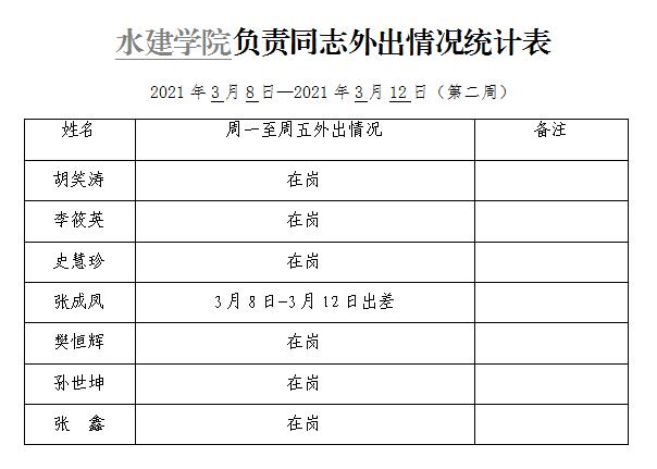 » 杏吧探花 负责同志外出情况统计表(第二周)