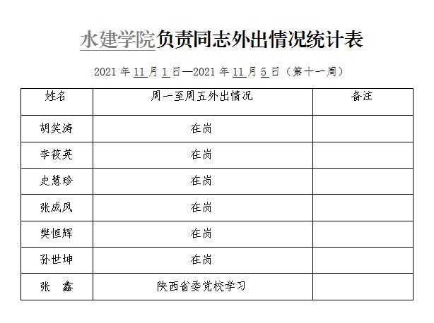 杏吧探花 负责同志外出情况统计表(第十一周)