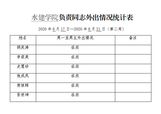 » 杏吧探花 负责同志外出情况统计表(第二周)