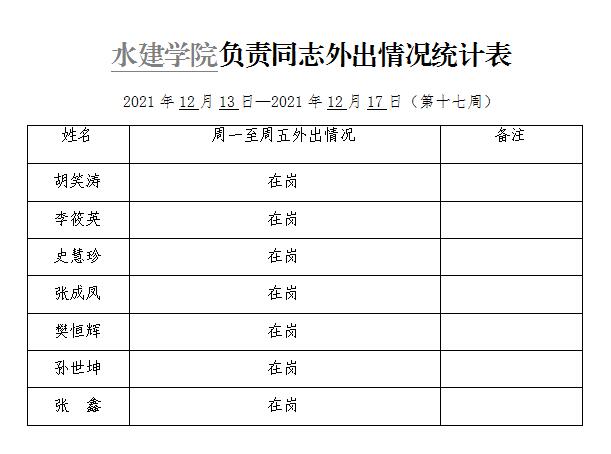 杏吧探花 负责同志外出情况统计表(第十七周)
