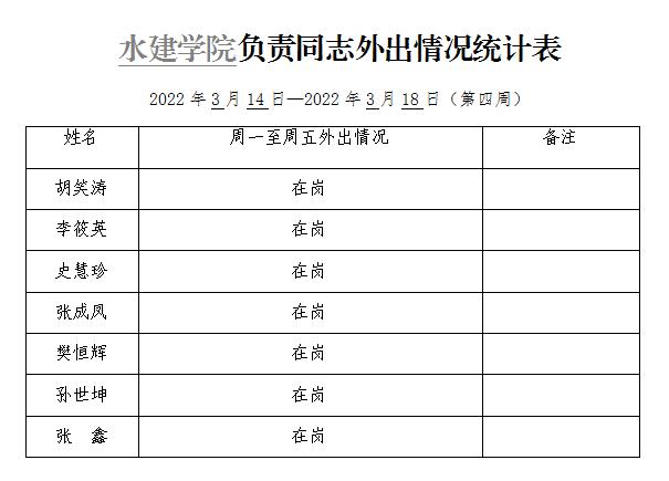 » 杏吧探花 负责同志外出情况统计表(第四周)