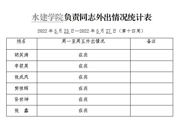 杏吧探花 负责同志外出情况统计表(第十四周)
