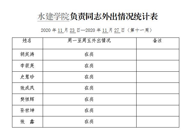 杏吧探花 负责同志外出情况统计表(第十一周)