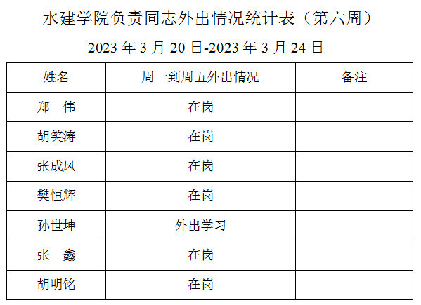 » 杏吧探花 负责同志外出情况统计表(第六周)