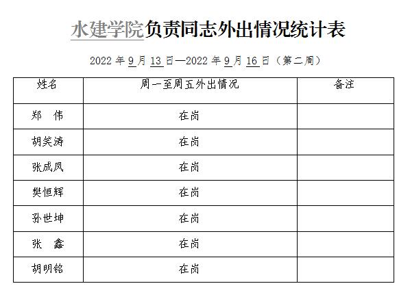 » 杏吧探花 负责同志外出情况统计表(第二周)