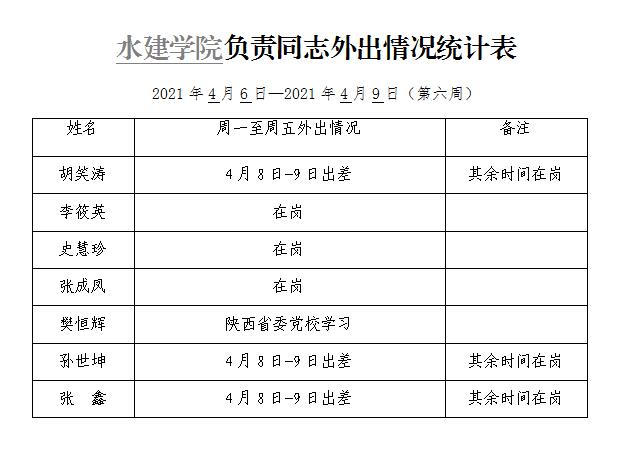 » 杏吧探花 负责同志外出情况统计表(第六周)