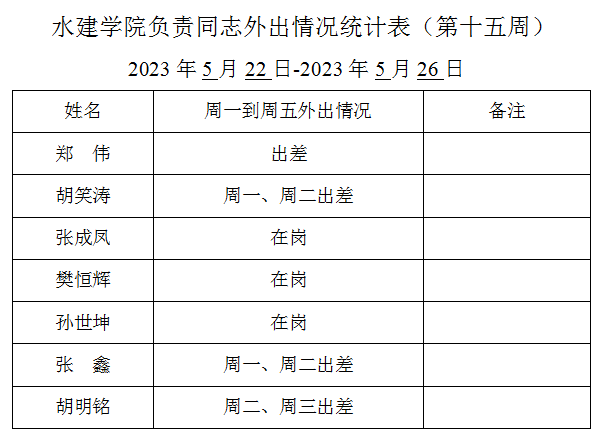 杏吧探花 负责同志外出情况统计表(第十五周)