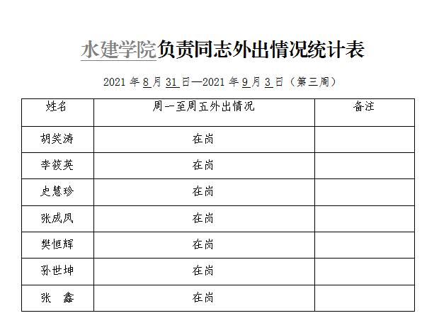 » 杏吧探花 负责同志外出情况统计表(第三周)