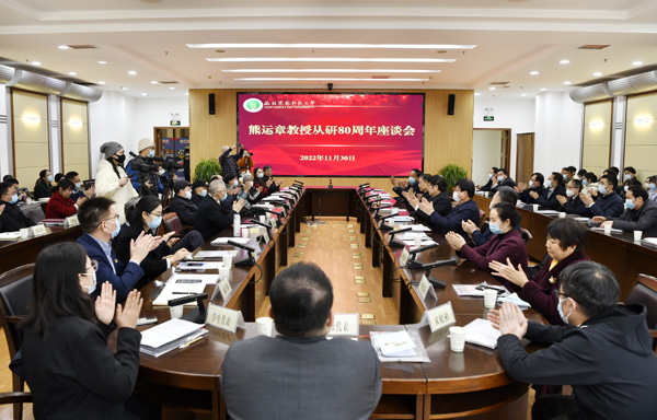 11月30日,在熊运章教授百岁寿诞之际,学校在交流中心210会议室举办熊运章教授从研80周年座谈会。校党委书记李兴旺出席座谈会并讲话,校长吴普特主持座谈会。李兴旺强调,我们共同祝贺熊运章教授期颐寿辰和厚重的从研80年,既是对前辈筚路蓝缕创业征程的重温回首,也是希望有更多后辈以他为报国、治学、育人、修身的典范,努力把学校建设成为中国特色世界一流农业大学,更好担负起实现中华民族伟大复兴的时代使命。