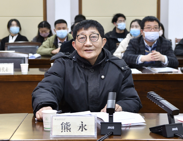 熊运章教授儿子熊永受父亲委托,向与会师生表达谢意和祝福,对学校、学院领导长期以来的关心表示感谢,衷心祝愿学校事业不断取得新突破。