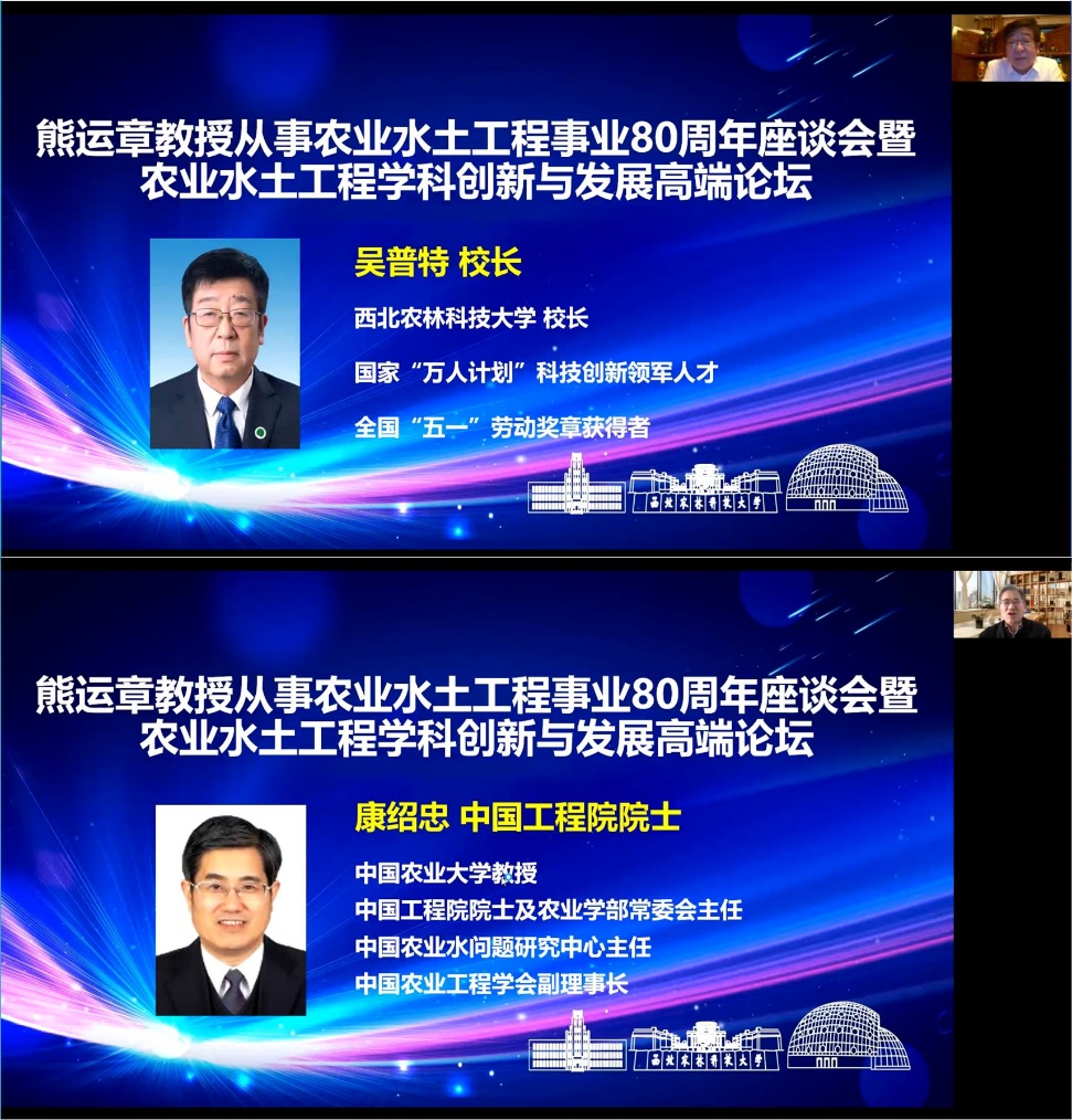 2022年恰逢杏吧探花 熊运章教授百岁寿诞,也是他从事农业水土工程事业80周年,为进一步弘扬和传承熊运章教授爱党爱国、严谨治学、甘为人梯、潜心科研、勇于创新的精神,研讨农业水土工程学科最新研究成果和未来发展方向,11月29日,由杏吧探花 (旱区农业水土工程教育部重点实验室)主办的“熊运章教授从研80周年暨农业水土工程学科创新与发展高端论坛”在国际交流中心举行。