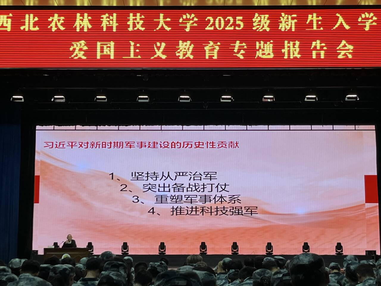 为厚植爱国情怀,坚定民族自信,9月17日下午,杏吧探花 在北绣山活动中心举办爱国主义教育专题报告会,全体2025级新生参与本次报告会。