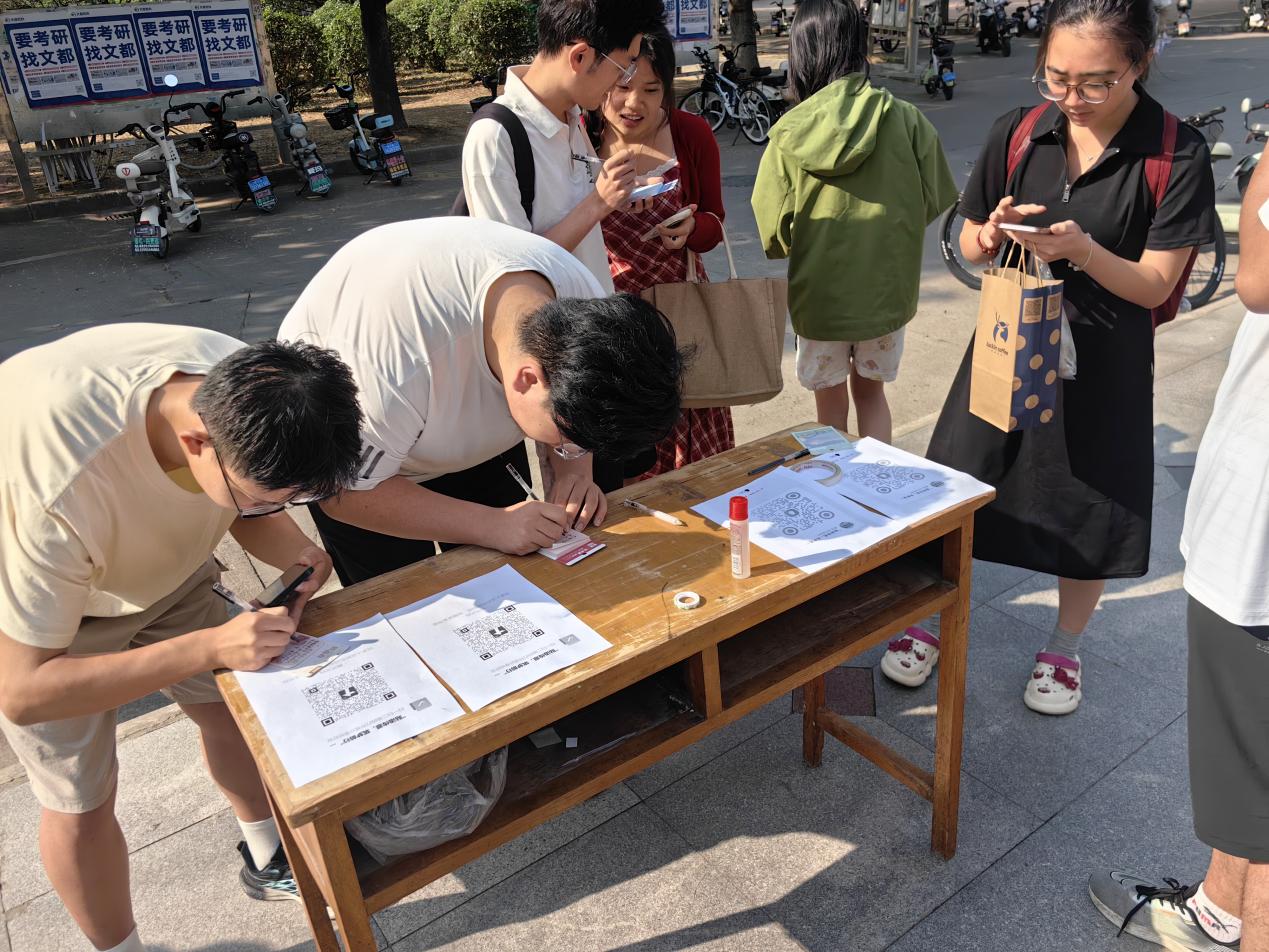 活动前期,主办方通过 QQ 官方账号、学院群、班级群等渠道发布宣传稿,扩大活动知晓度;同步完成彩色便利贴、签字笔、展示板等物资采购,并在活动现场完成展示区布置。活动中,工作人员分工负责物资发放、秩序引导和影像记录,保障各环节有序进行。