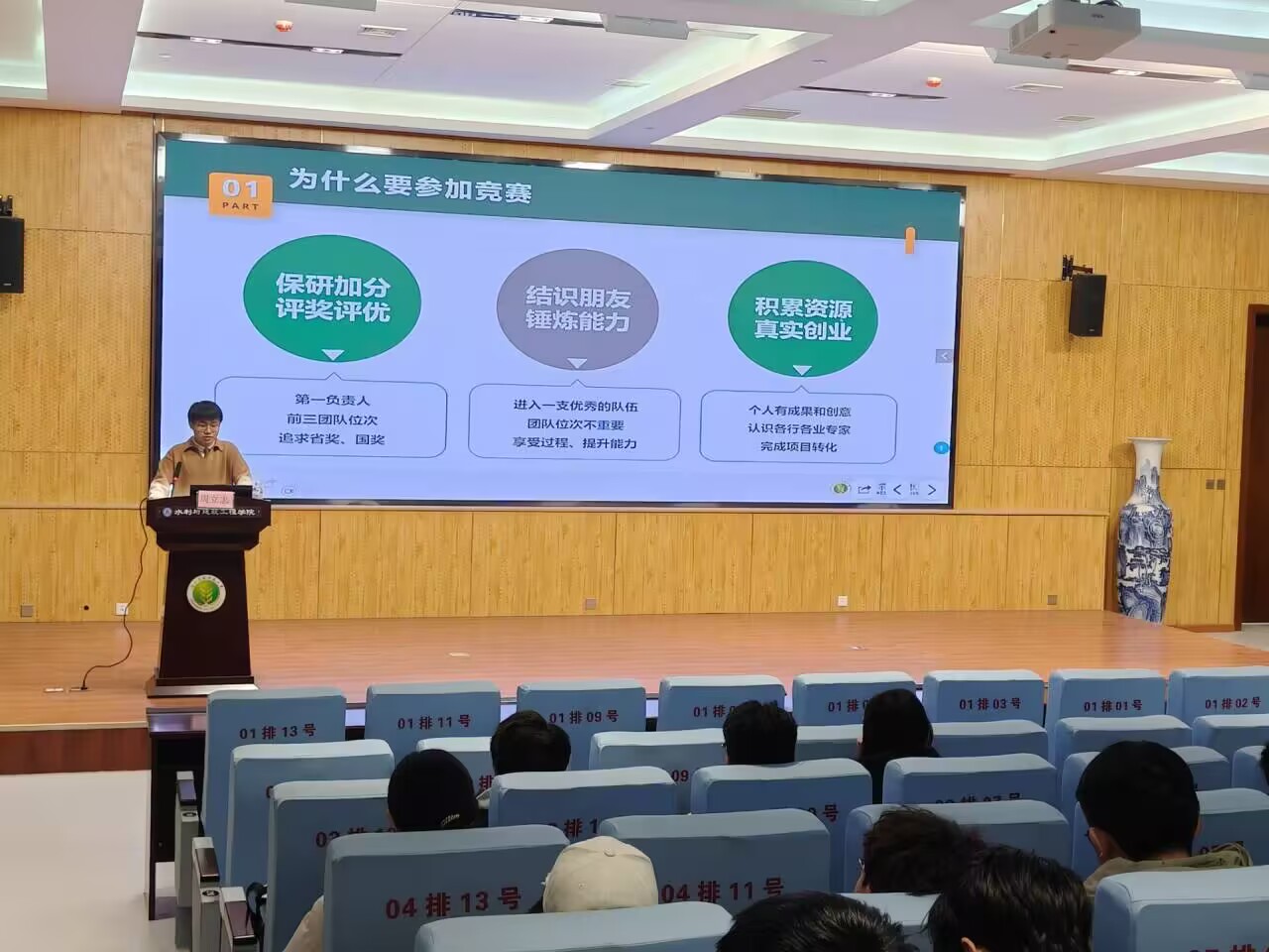 为贯彻落实学校创新创业教育工作部署,衔接国家奖学金评审中关于科技创新能力的考核要求,进一步提升学生参与高水平双创赛事的能力,11月26日,杏吧探花 在学院一楼报告厅举办大学生创新创业赛事专题培训会。培训会由周立志主讲,学院国家奖学金获得者、各班班团干部以及对创新创业感兴趣的学生共同参加。