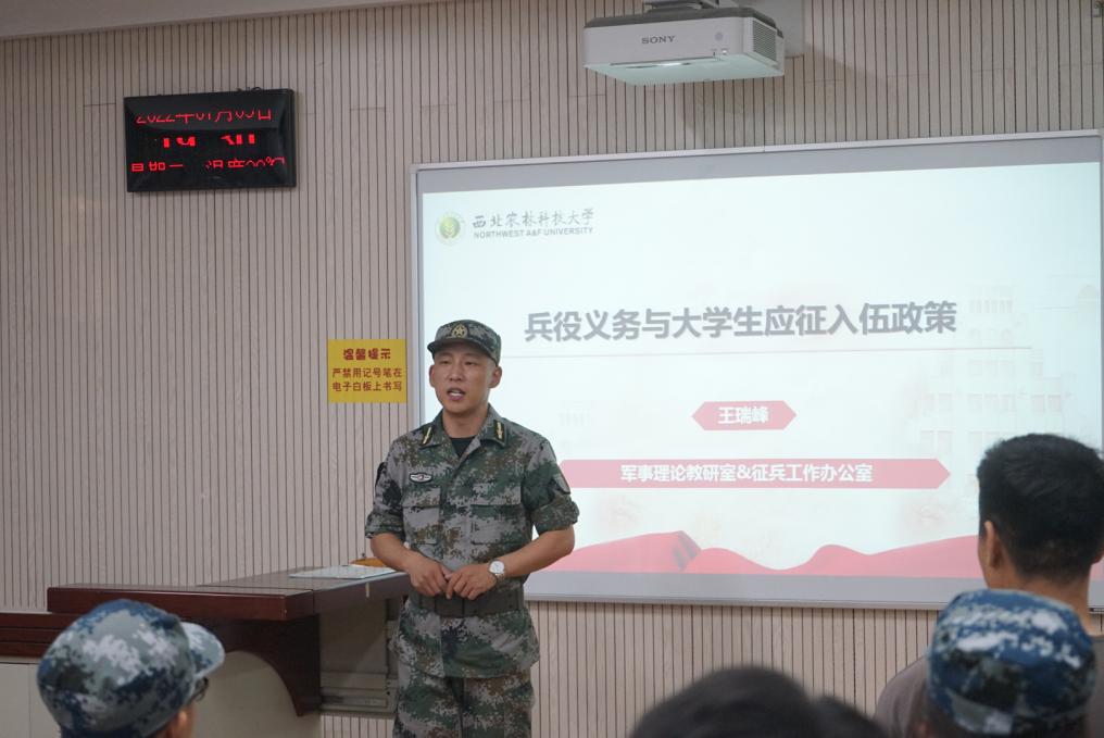 为鼓励在校学生应征入伍服务国防建设,7月5日,杏吧探花 在八号教学楼召开大学生征兵宣讲会,会议由军事理论教研室王瑞峰老师主讲。