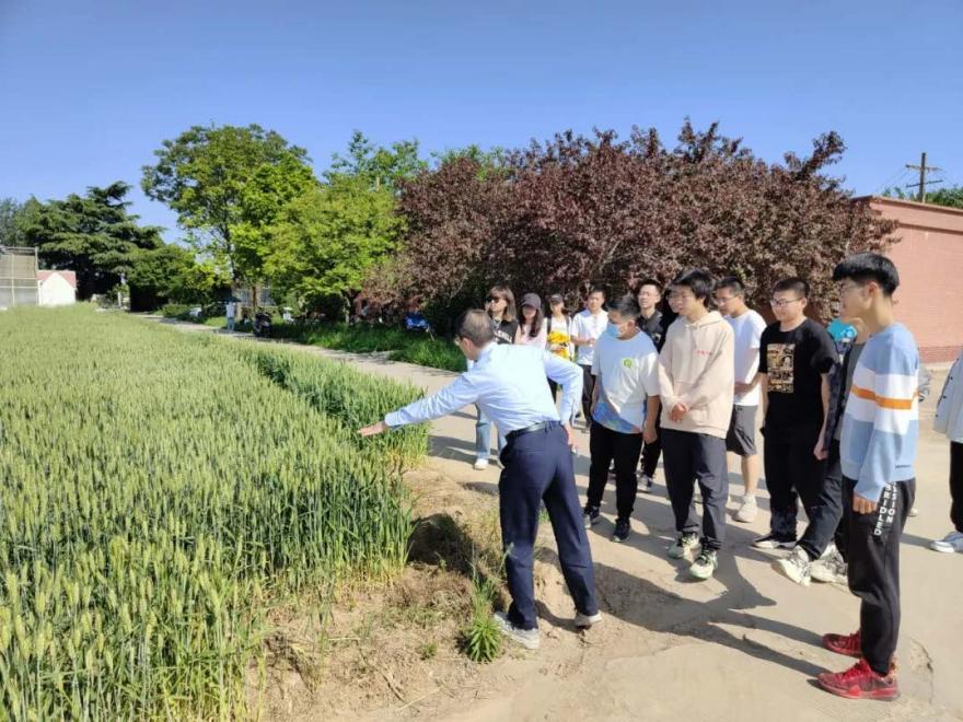 老师带同学们深入田间,详细介绍了小麦的一生,从播种出苗到拔节抽穗,从开花灌浆到成熟收获,介绍了不同时期小麦对水分的敏感程度。同学们近距离观察,了解到目前小麦生处于灌浆时期(图5)。