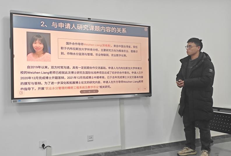 张锐同学同样出访美国内布拉斯加大学林肯分校,他介绍了合作导师的研究领域以及此次访学的主要目标和期望。张锐详细对比了美国内布拉斯加地区大型农场与中国的灌溉措施,包括先进的灌溉系统、水资源高效利用策略及智能化管理。他还分享了在美国的日常生活体验,如住宿条件、交通方式,以及参与当地文化活动的经历。通过访学,张锐在专业知识、科研方法等方面有了显著提升,跨文化交流能力也得到了锻炼。