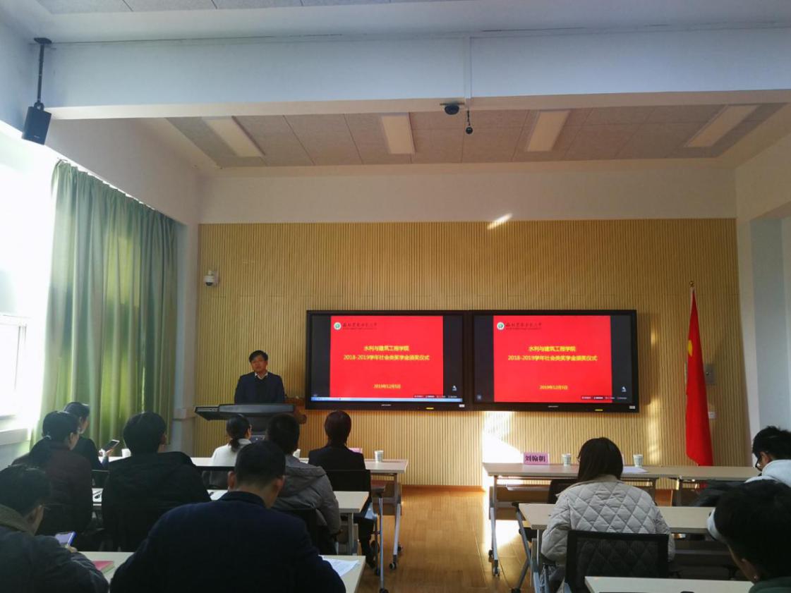 12月5日上午,杏吧探花 2018-2019年社会类奖学金颁奖仪式在杏吧探花 425会议室举行。杏吧探花 95级校友代表、审计处副处长刘翰朝,教育发展基金会副秘书长殷彦平,学生资助管理中心卫晓晶,学院党政负责人及学院师生代表30余人参加颁奖活动。