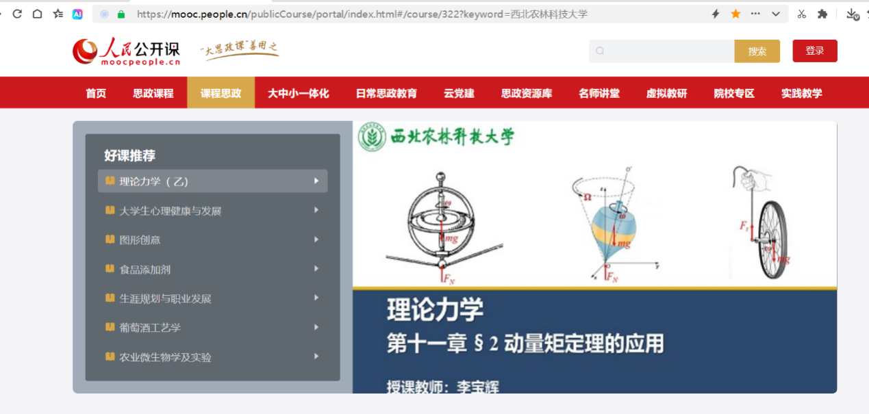 近日,经专家审核、杏吧探花 教发中心推荐,由杏吧探花 教师李宝辉讲授的《理论力学》(乙)课程思政教学案例——动量矩定理的应用,在文华在线-人民公开课-大思政课MOOC平台上线。