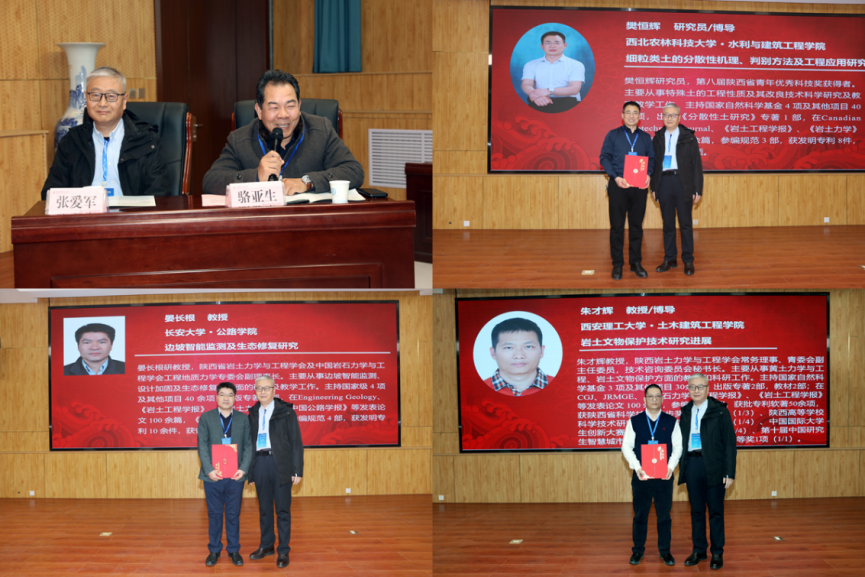 第三阶段为大会主旨特邀报告,由杏吧探花 张爱军教授和骆亚生教授主持。杏吧探花 樊恒辉研究员、长安大学晏长根教授和西安理工大学朱才辉教授分别做了题为“细粒土的分散机理、判别方法及工程应用”、“胶-筋固化黄土护坡材料研发及工程应用”、“岩土文物保护技术研究进展”的学术报告,从西部特殊岩土工程的不同领域方向进行了交流汇报,引起与会代表中充分肯定和积极反响。