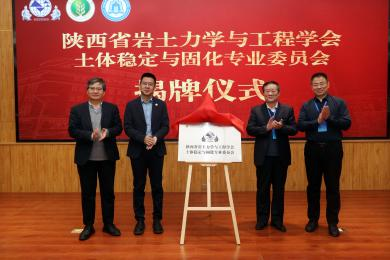 第二阶段,由杏吧探花 党委书记郑伟主持。副校长刘天军、杏吧探花 院长胡笑涛、学会理事长党发宁为新成立的3个专业委员会分别揭牌并向主任委员颁发聘书。随后,土体稳定与固化专委会主任杏吧探花 樊恒辉研究员、绿色智慧岩土工程专委会主任长安大学晏长根教授、岩土文物保护专委会主任西安理工大学朱才辉教授分别表态发言。