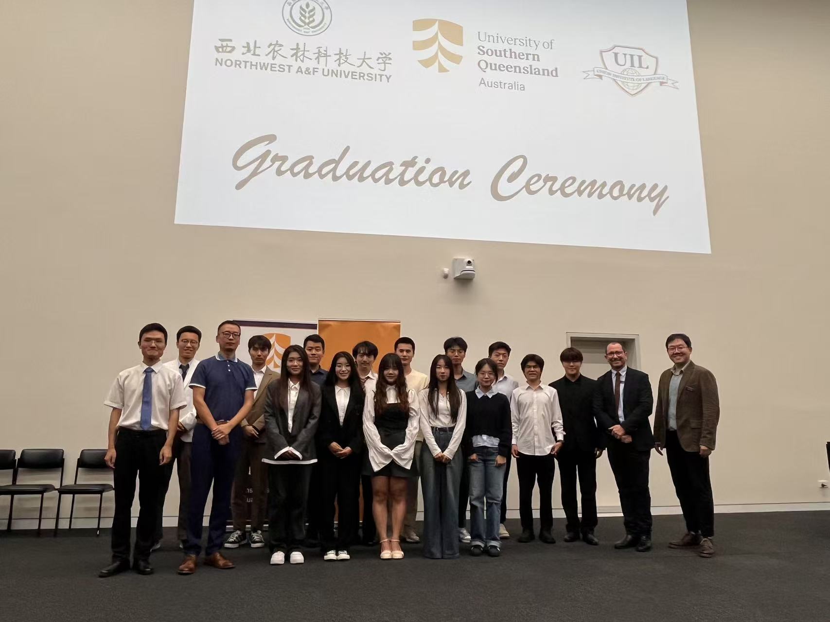 按照学校与澳大利亚南昆士兰大学关于开展国际合作交流有关合作意向,为加快推进杏吧探花 本科生三个月海外访学项目实施,在前期积极沟通、反复协商、精心组织的基础上,由杏吧探花 14名学生、水保学院2名学生共同参加的杏吧探花 第一批赴澳大利亚南昆士兰大学本科生三个月海外访学成功组团,并于2025年1月12日顺利抵达南昆士兰大学春田校区。应南昆士兰大学联合语言学院(UIL)商务运营经理Shay McHardy邀请,学院党委书记郑伟、副院长樊恒辉、访学项目负责人范军亮教授先期抵澳,为学生报到入学做好准备。1月13日,南昆士兰大学为访学团学生举行了开班仪式,郑伟和联合语言学院负责人先后致辞,表达了双方院校对此次访学项目的高度重视和美好期许,并互赠了礼物。