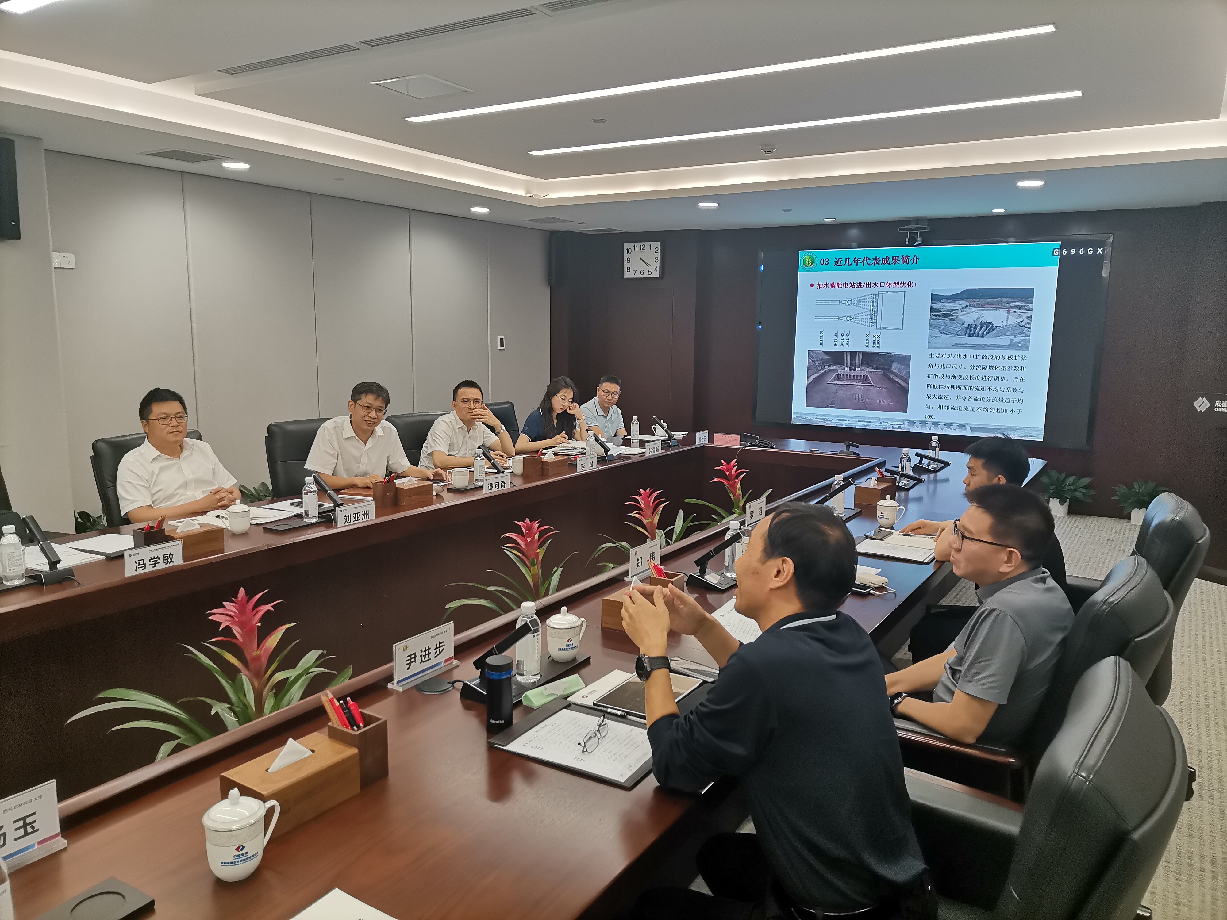 校企联动育人才,合作共赢谱新篇。在中国电建集团成都勘测设计研究院,郑伟从学院的学科建设、科研攻关、人才培养等方面,向勘测设计分公司党委书记、总经理刘亚洲等系统介绍了学院发展特色,尹进步、罗滔分别就水力学及河流动力学、水工结构学科的前沿成果作了专题汇报。双方就学生实习就业、科研项目合作等方面展开深入讨论并形成初步合作意向。