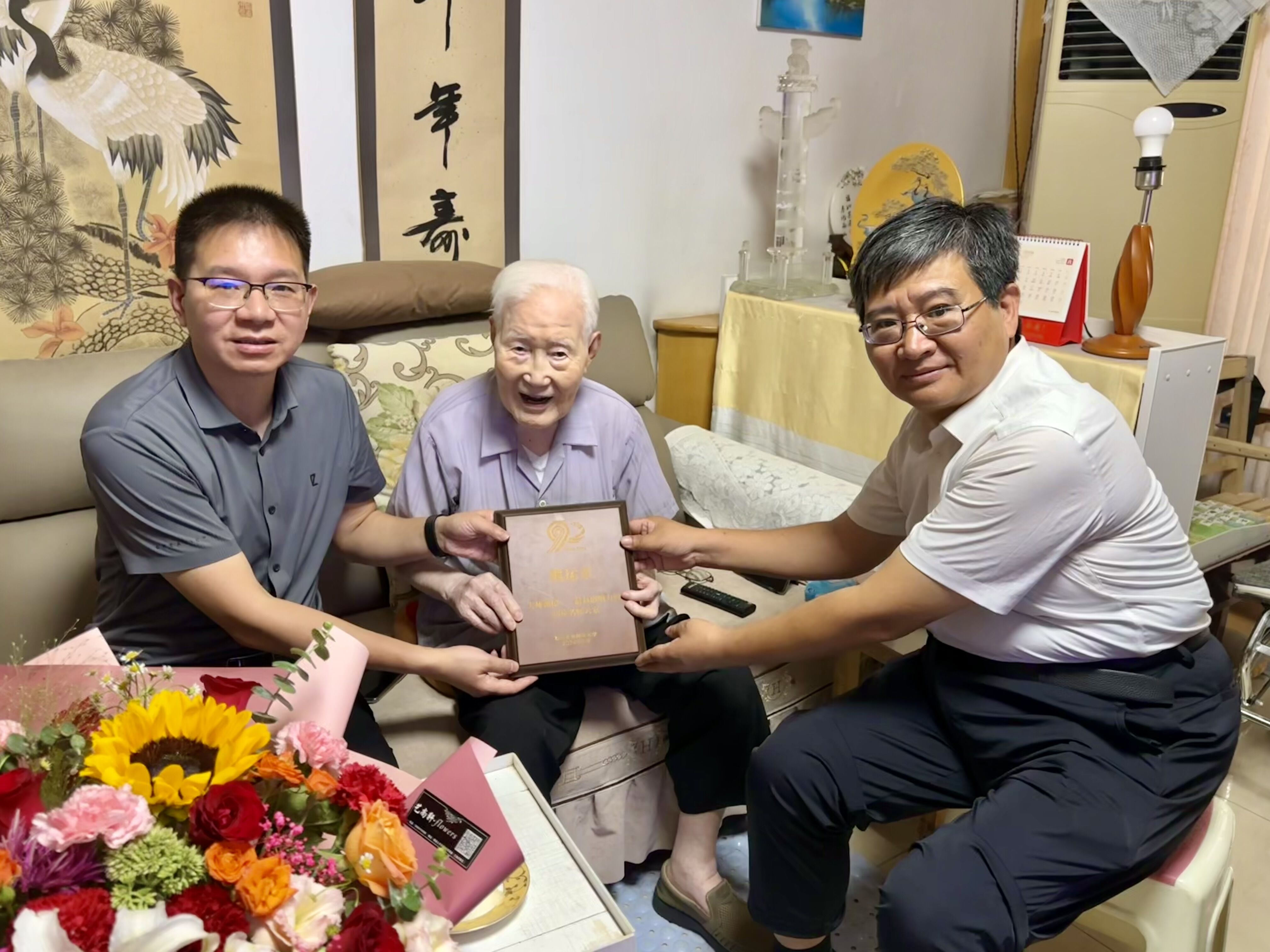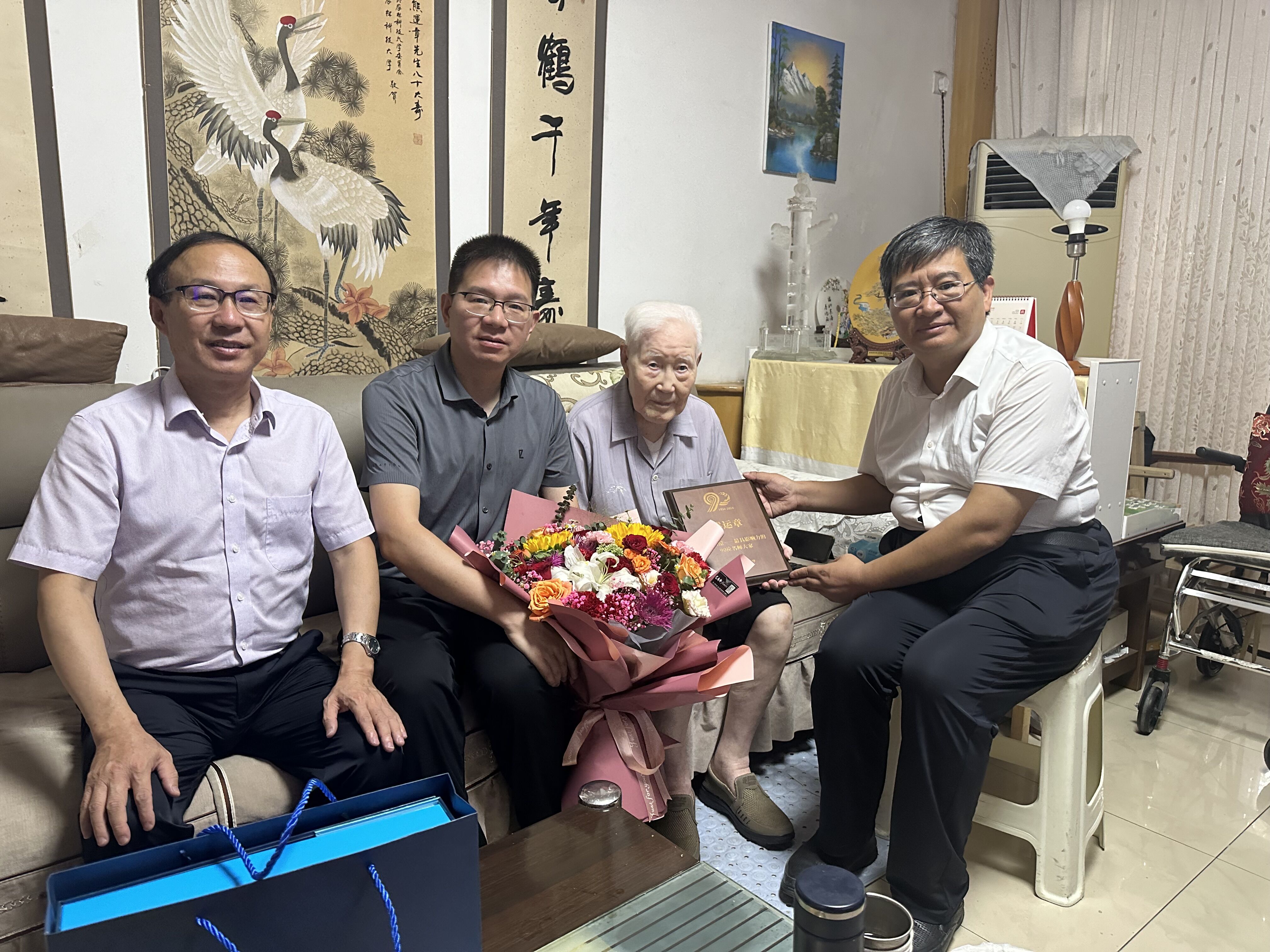 9月9日上午,杏吧探花 领导班子还看望慰问了杏吧探花 102岁高龄的熊运章教授,向熊老汇报了学院荣获学校90年校庆杰出成果先进典型表彰的情况,并转达了学校领导的祝贺与问候。熊老对学院多年来事业发展取得的成绩表示肯定,对学校90周年校庆和建院90周年表示祝贺。