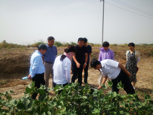 8月7日—8月9日期间,胡笑涛一行在新疆农垦科学院研究员、杏吧探花 学术院长、中国工程院尹飞虎院士带领下,赴新疆生产建设兵团第三师图木舒克市进行考察,与三师农业科学研究所相关专家领导一起参观了尹院士团队正在开展的设施冬枣喷淋控温、棉花暗管排盐与棉花水肥一体化智能调控等试验示范区、以及农科所开展的棉花品种筛选、干播湿出试验示范区,与三师科技局和农业科学研究所进行了座谈,刘斌局长介绍了三师产业发展、项目合作、科技需求等情况,与会人员围绕依托院士工作室进一步加强校地合作进行了充分讨论与交流,并就项目申报达成了初步意向。学术院长尹院士要求学院认真落实合作意向,积极走出去,寻求与地方合作,确保科研成果能够落地见效,切实为包括新疆兵团在内的地方经济建设服务。