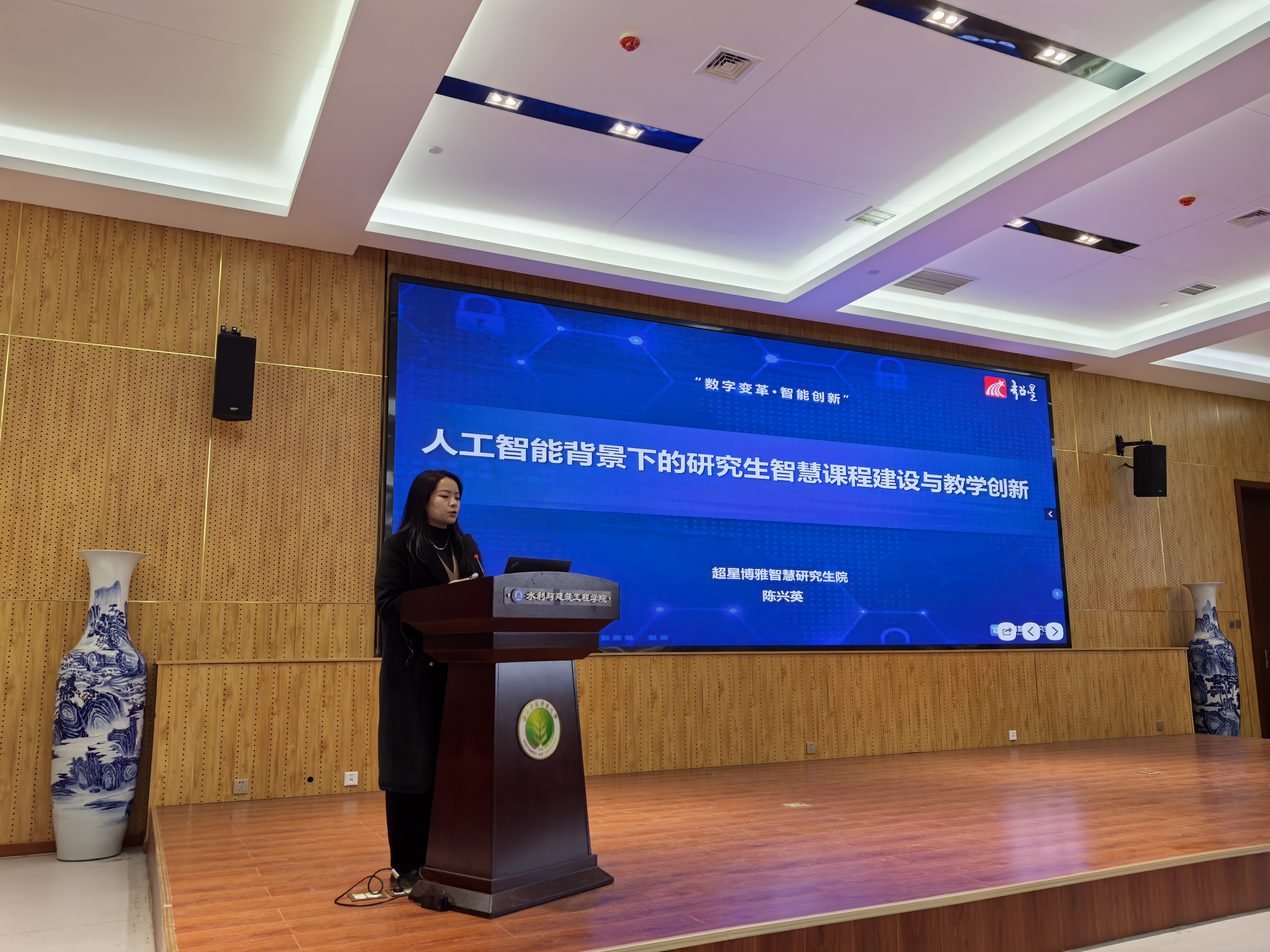西北工业大学力学与土木建筑学院张娟教授以“教师数字素养提升及数字化和AI课程建设与实践”为题,结合“理论力学”课程的建设实践,介绍数字化背景下的数字化教学资源建设、AI课程建设、多元融合的教学模式、数字化考核评价机制和教学改革成效,为开展AI研究生智慧课程建设提供参考。超星泛雅集团产品总监陈兴英以“人工智能背景下的研究生智慧课程建设与教学创新”为题,阐述了智慧课程的建设背景及意义、新时代智慧课程建设思路和智慧课程案例与成果培育,深入探讨了基于智慧课程的研究生混合教学模式以及教学智能体的建设和应用。